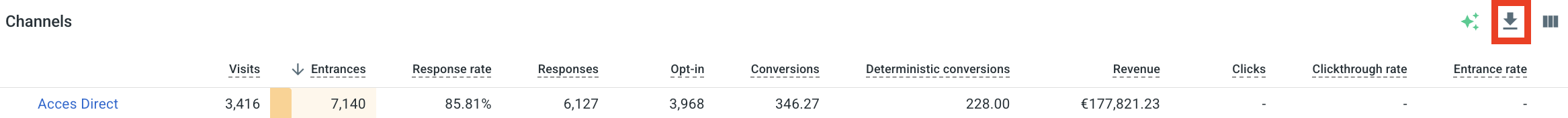 Manual exports are available on most tables and charts throughout the app. Depending on the volume of data, generating an export may take a few moments: a notification will appear at the bottom left of your screen to let you know when the file is ready.