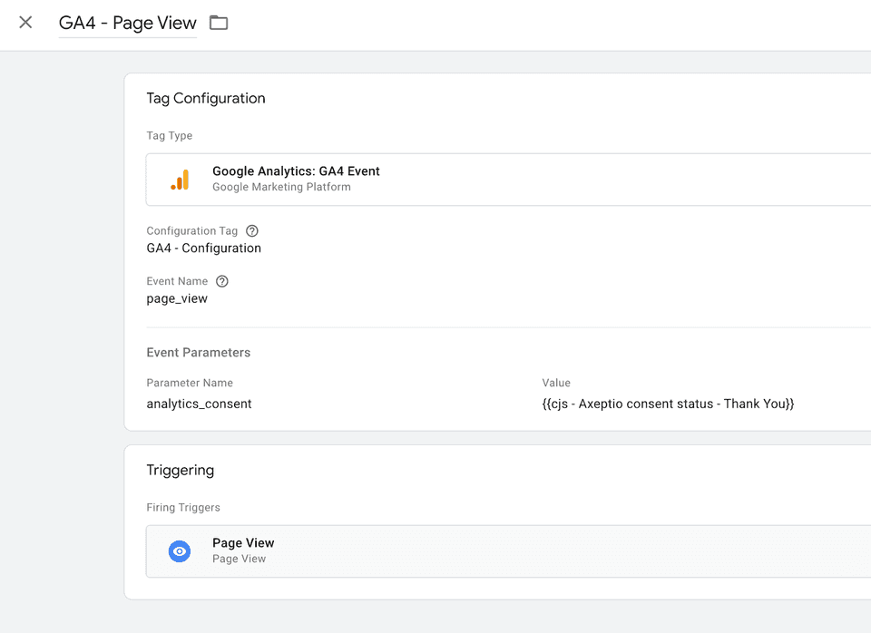 Then, you have to create another page_view tag triggered when a user changes his analytics consent. Either on acceptance or refusal.