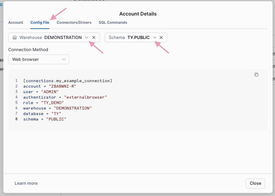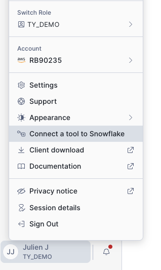 Follow this path “account” > Connect a tool to Snowflake