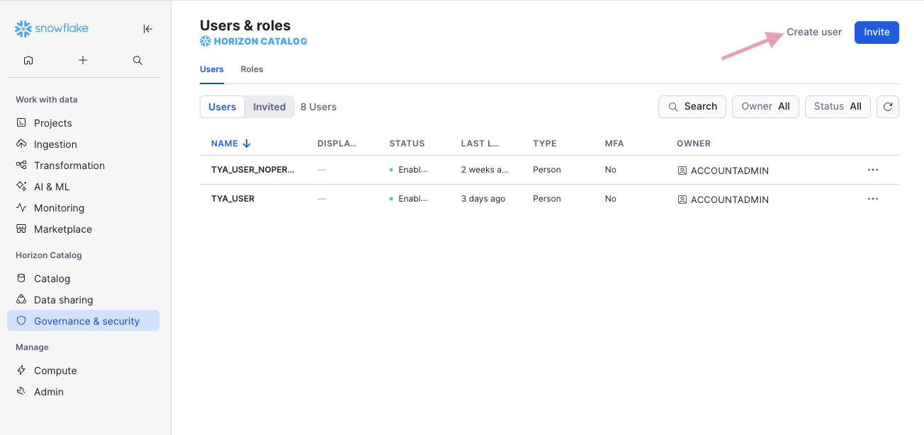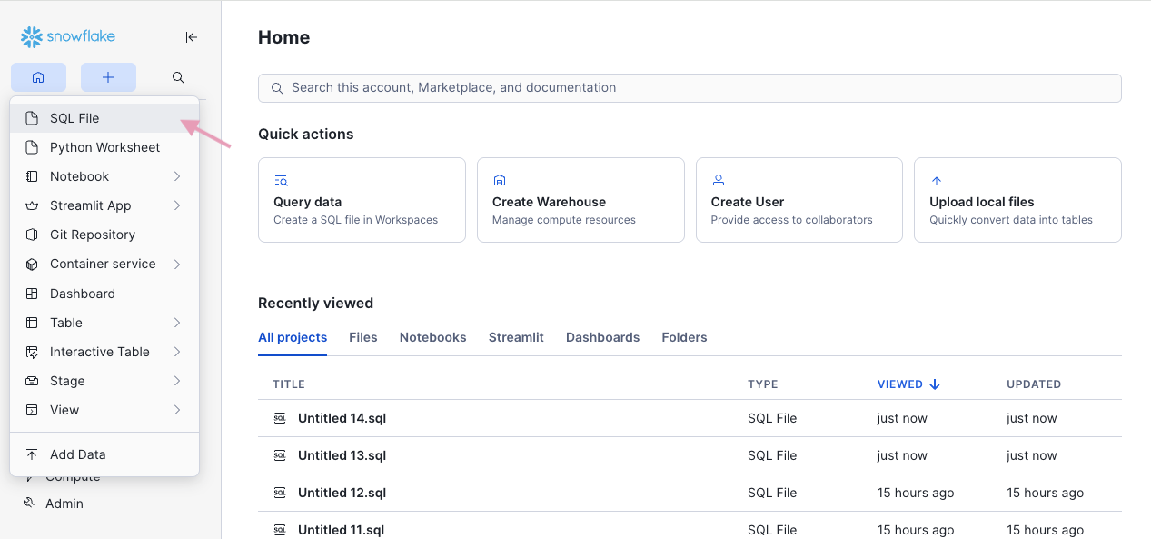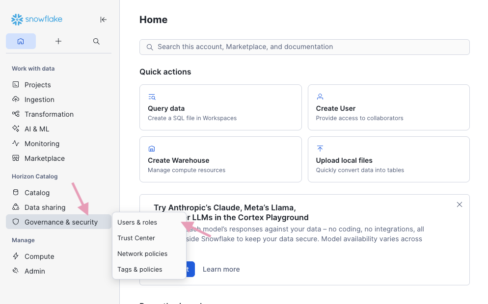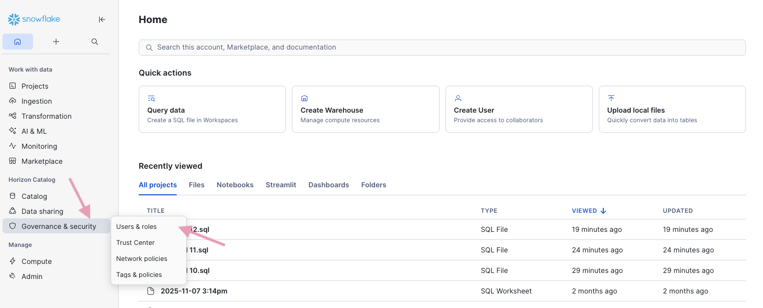 Go to your Snowflake app (URL like app.snowflake.com/…)