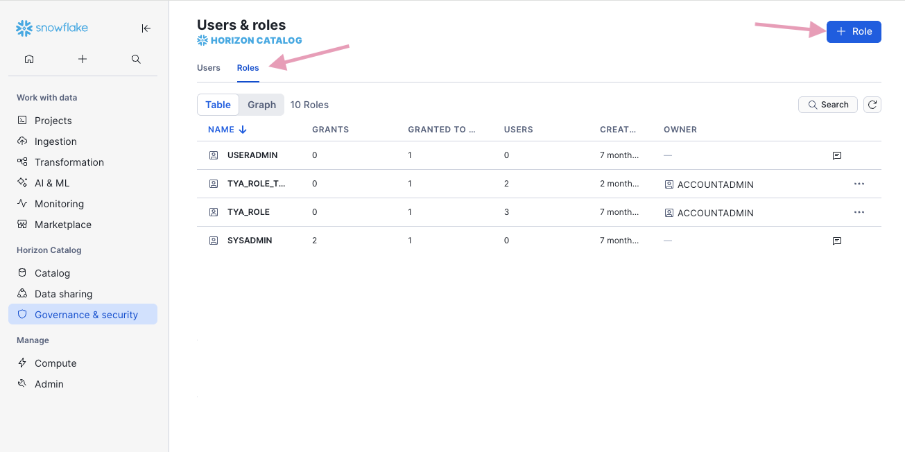 Create a new role "TY_xxx" inheriting from the "SYSADMIN" role.