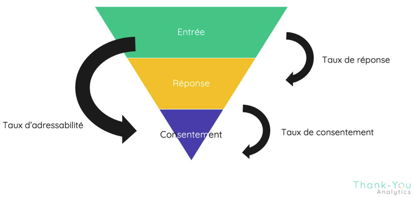 Le taux d'adressabilité est le total de consentements / total d'entrées. Il permet de connaître la capacité à adresser un message marketing à son audience à travers les différents leviers.