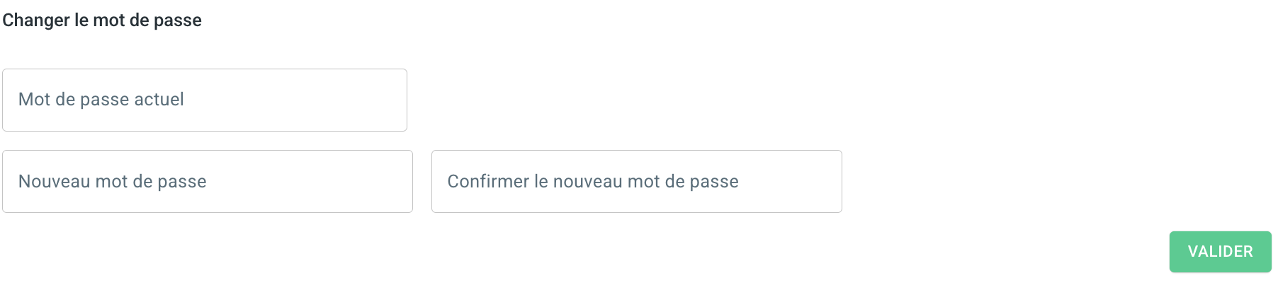 Vous pouvez mettre à jour votre mot de passe à tout moment en saisissant votre mot de passe actuel suivi du nouveau.