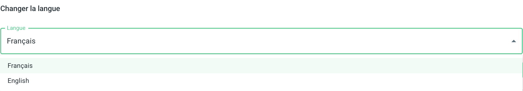 Au niveau de la langue, vous pouvez modifier la langue de votre interface (Français/Anglais) pour naviguer plus confortablement.